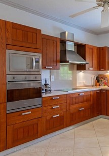 The fully equipped kitchen is ready for your culinary adventures with a fridge-freezer, microwave, oven, stove, dishwasher, and washing machine, so you’ve got all the tools to cook up some island treats.